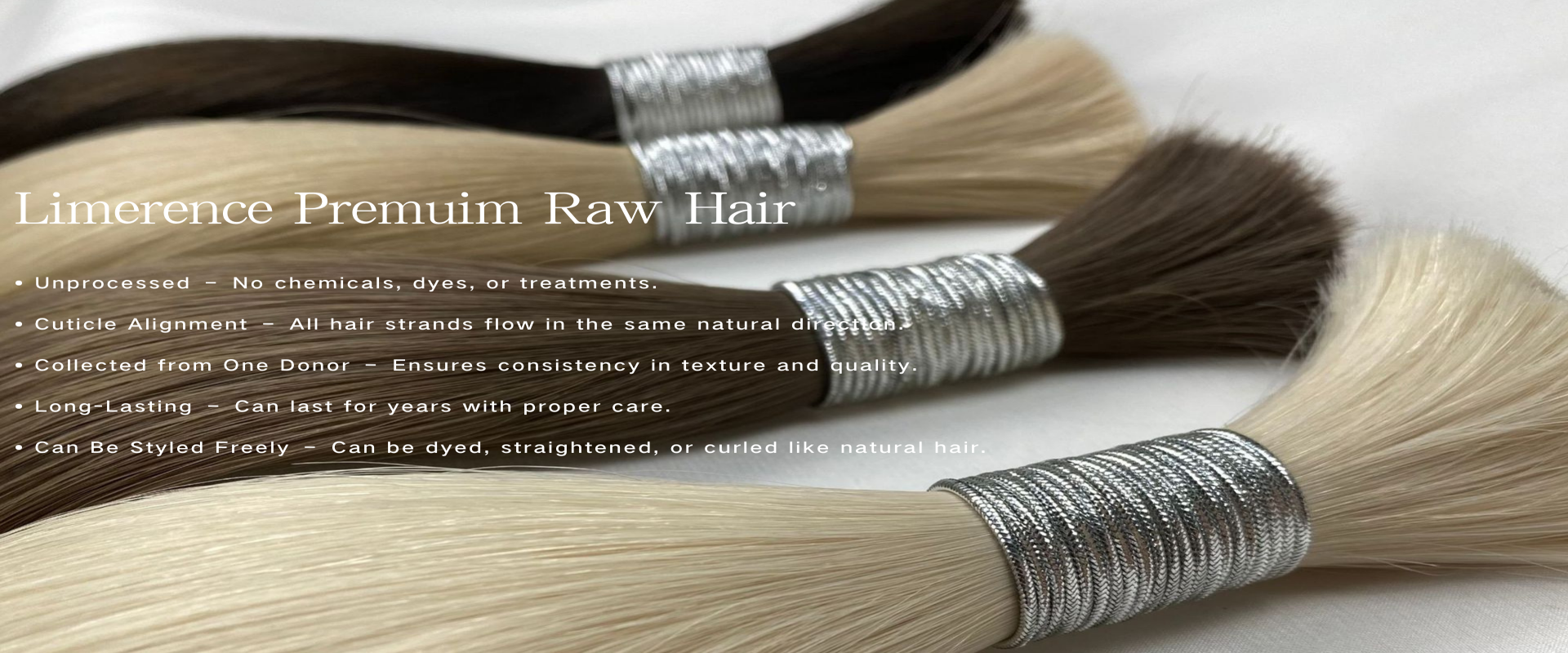 Our gentle, minimal processing retains the hair's natural texture and full cuticle integrity.